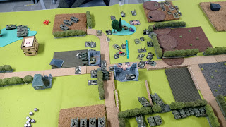 Al final, los más fiables tanques británicos, los churchills, estaban a 10 del objetivo empezando el turno, y lanzaron el asalto. Había un pelotón de infantería con dos fausts, cañones de 45mm, morteros, MGs, de todo al lado del objetivo!!!